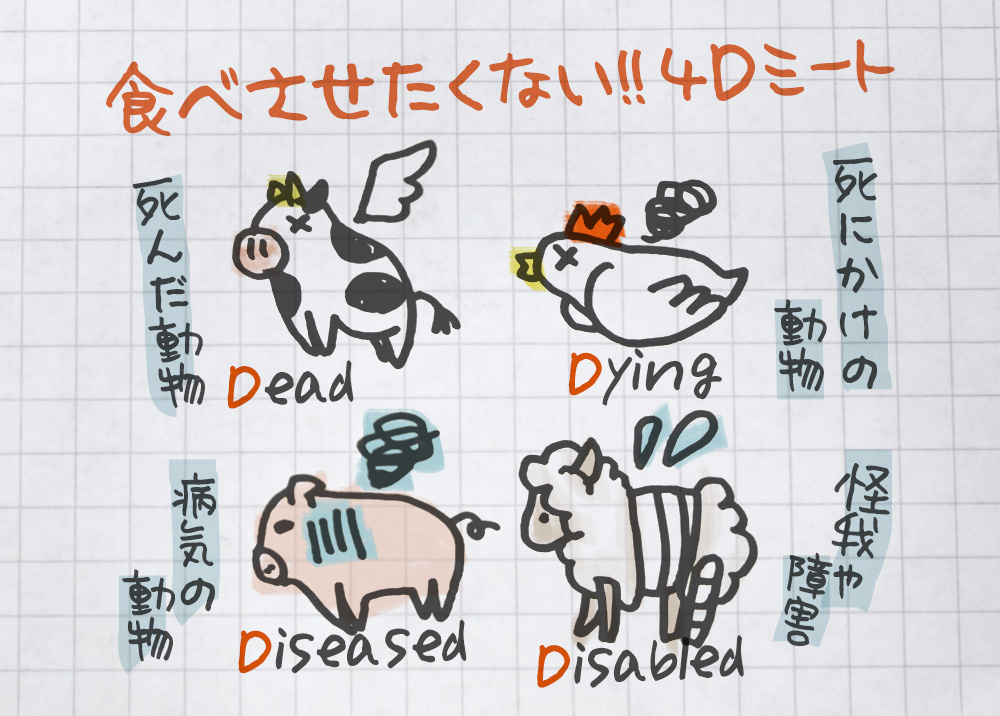 病気や死んだ動物の肉(4Dミート)