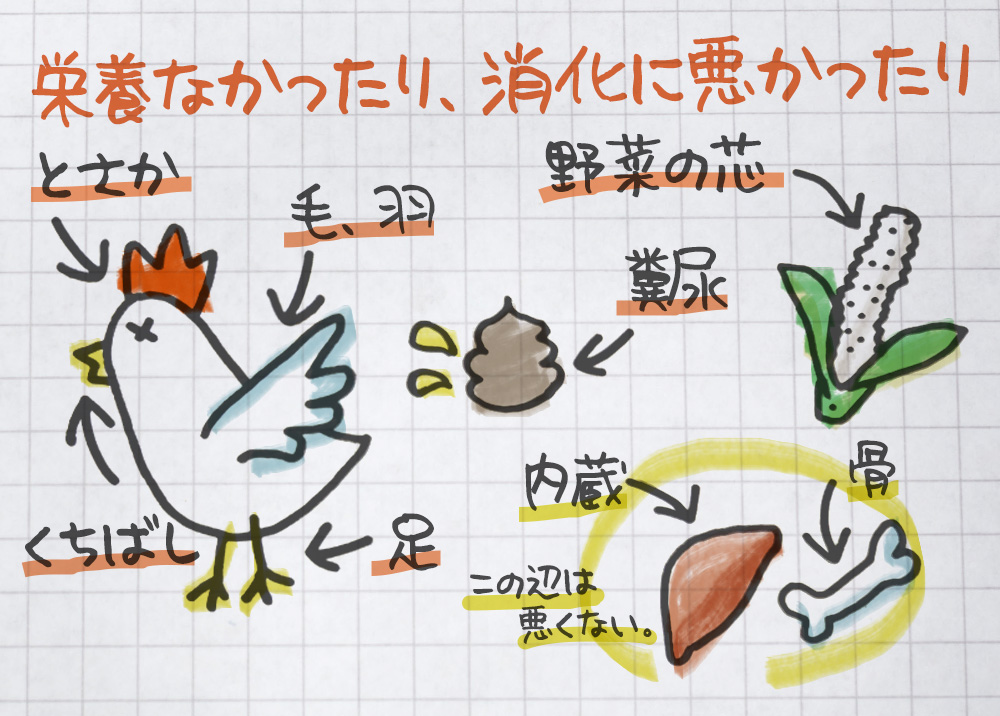 鶏のとさかや野菜の芯など